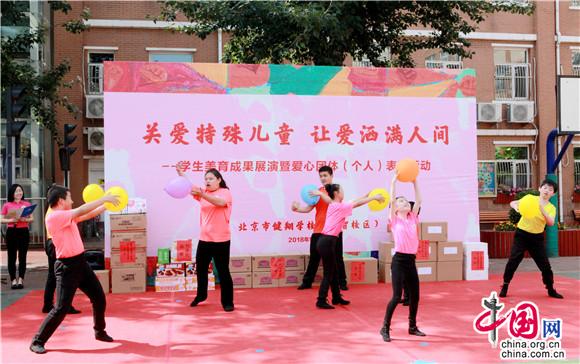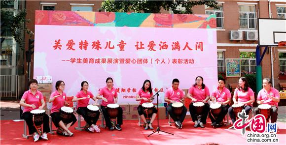 中国网5月21日讯(记者闫景臻)每年五月的第三个星期日是全国助残日,各地开展助残日系列活动。5月18日,在北京市健翔学校培智校区,隆重举行了“关爱特殊儿童让爱洒满人间——培智学生美育成果展演暨爱心个人(团体)表彰”活动。