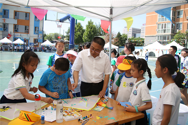 白色的遮阳棚、不同的项目区、精彩的海报展,迎来了一群满脸兴奋的孩子们。今天的中国科学院附属玉泉小学,就像一个热闹的大集市,吆喝声、欢呼声、歌唱表演、器乐演出轮番上场,简直嗨翻天。
