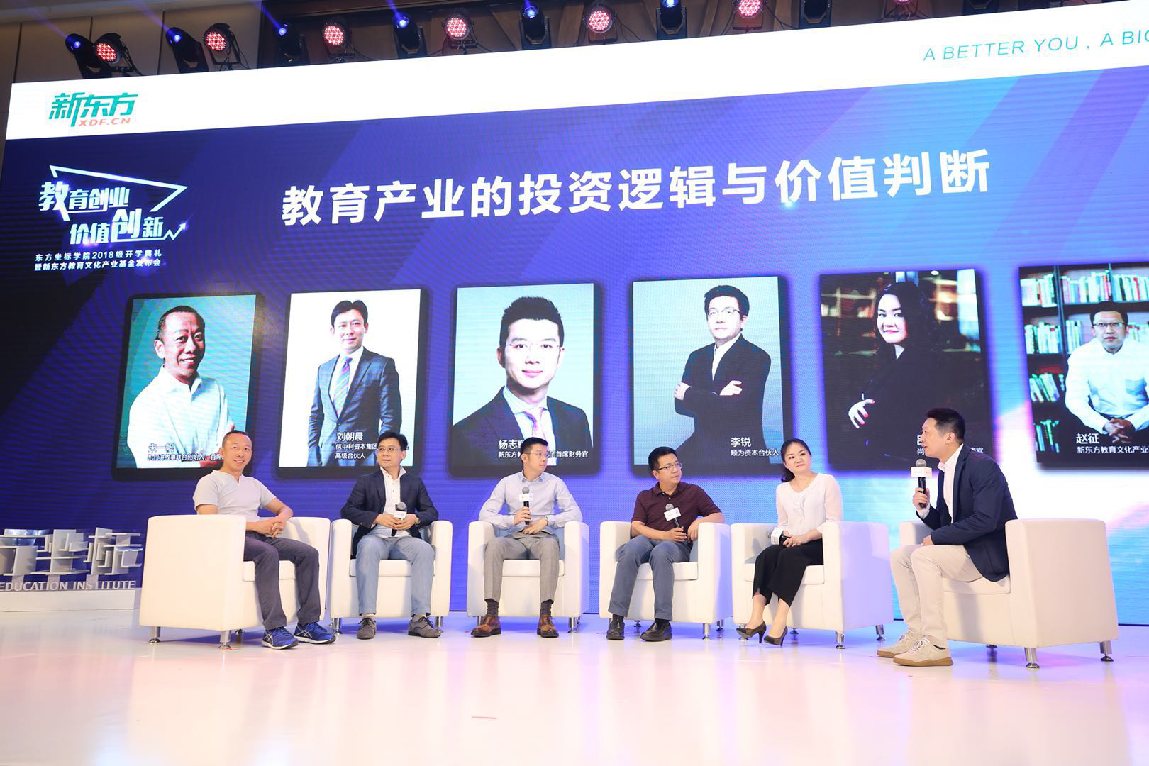 随后,新东方教育科技集团首席财务官杨志辉,信中利资本集团董事总经理、高级合伙人刘朝晨,尚德机构首席战略官吕露,凯叔讲故事联合创始人、首席运营官朱一帆,顺为资本合伙人李锐以“教育产业的投资逻辑与价值判断”为主题进行了圆桌对话。