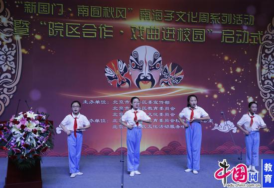 揭牌仪式后,北京小学翡翠城分校、大兴二小学生表演了京剧选段,京剧名家胡文阁进行了现场授课。