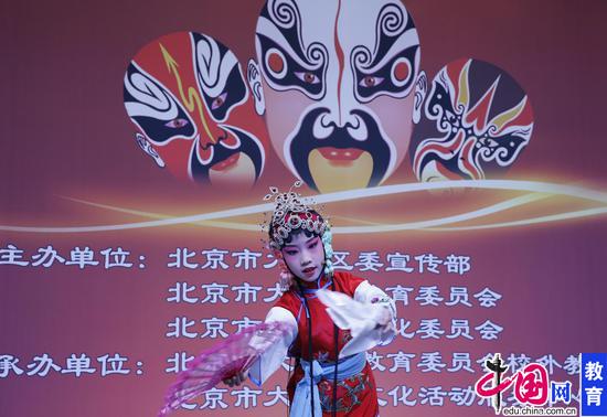 大兴区以立德树人为根本任务,坚守中华文化立场、传承中华文化精髓,将戏曲教育作为传承弘扬中华优秀传统文化的重要内容,采取多种形式积极营造校园戏曲文化的浓厚氛围。依托“一十百千万”工程,举办一次启动仪式、创建一个戏曲艺术专家工作室;推出十二所试点学校、创编十部原创校园国剧;培养百名师资队伍、开展百场戏曲教育活动;开展千节京剧课,培养千名戏曲师生爱好者;通过多种戏曲教育活动惠及全区中小学7万余名师生等一系列活动,加强校园戏曲通识普及教育,增进学生对戏曲艺术的了解和体验,引领学生树立正确的审美观念、陶冶高尚的道德情操、培育深厚的民族情感,浸润学生心灵、促进学生全面发展。