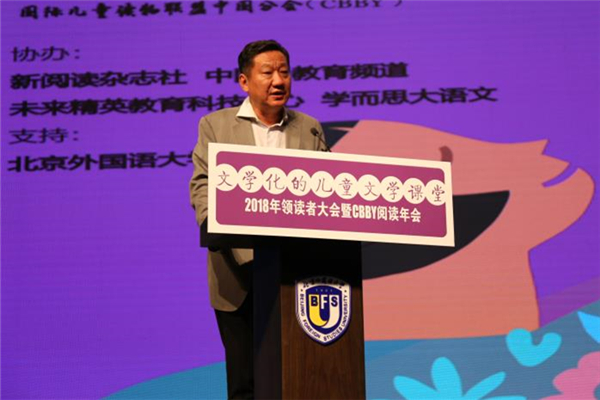 中国网9月29日讯(记者 曾瑞鑫)9月28日上午,"2018领读者大会暨CBBY阅读年会"在北京外国语大学国际大厦开幕。本次会议由新教育研究院新阅读研究所和国际儿童读物联盟中国分会(CCBY)联合主办,主题为"文学化的儿童文学课堂",会议以领读者讲座、名师课堂、沙龙研讨、工作坊等几种方式进行,综合呈现出国内阅读推广界的最新风貌。民进中央副主席、全民阅读形象大使、新教育实验发起人朱永新,新阅读研究所所长、著名阅读推广人梅子涵,国际儿童读物联盟中国分会主席、中国出版协会少年儿童读物工作委员会主任李学谦,国际儿童读物联盟(IBBY)主席张明舟参加会议并发表主题演讲。
