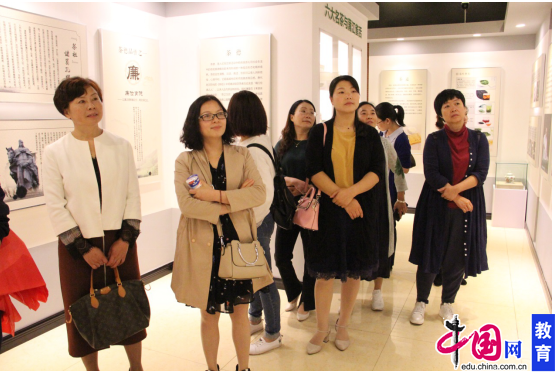 讲解员引领教育局党员干部了解“茶之渊源、茶之人文、茶之品性、茶之境界”四大板块,深入思考了中国传统茶文化所展现的“重德、尚和、崇俭、贵真”的人生价值观,“廉、美、和、静”四大茶德植根党员干部的心里。