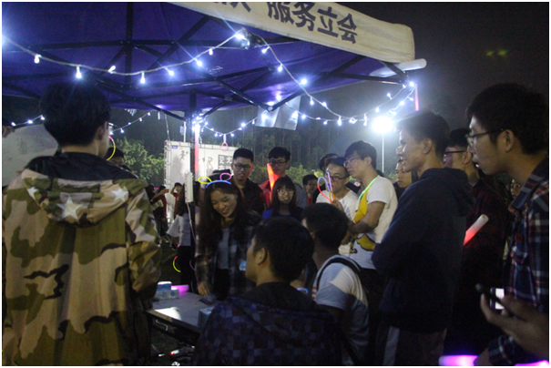 夜跑结束后,参与者陆续回到足球场,舞台中的文艺表演,精彩的游园区活动随之开始。每个摊位都传来欢声笑语,即使排着长队,参与者们依然热情满满。据了解,为了使活动深入基层,提升基层活力,汽车与交通工程学院团委将游园区游戏方案由各团支部通过竞标,最终筛选出6个优秀的团支部承办。
