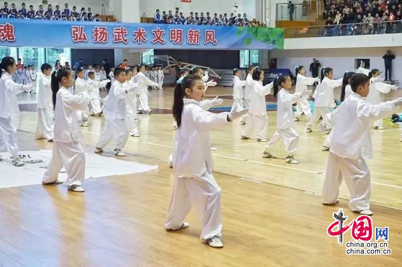 来自大邑县南街小学、北街小学、子龙街小学、银都小学等7所学校的师生以中华传统武术为基础,通过9场演出展示了传统的中华武术套路和器械(刀、枪、剑、棍、棒等),太极拳和武术散打、自由搏击、跆拳道等。