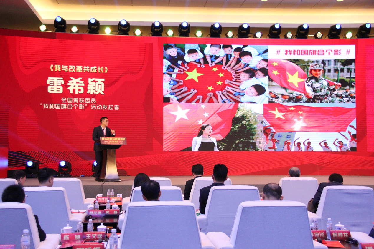 11月16日,全国青联委员,“我和国旗合个影”活动发起者雷希颖在“我与改革开放共成长”青少年讲坛暨“中国青少年品牌发展计划”发布会上发表主题演讲。
