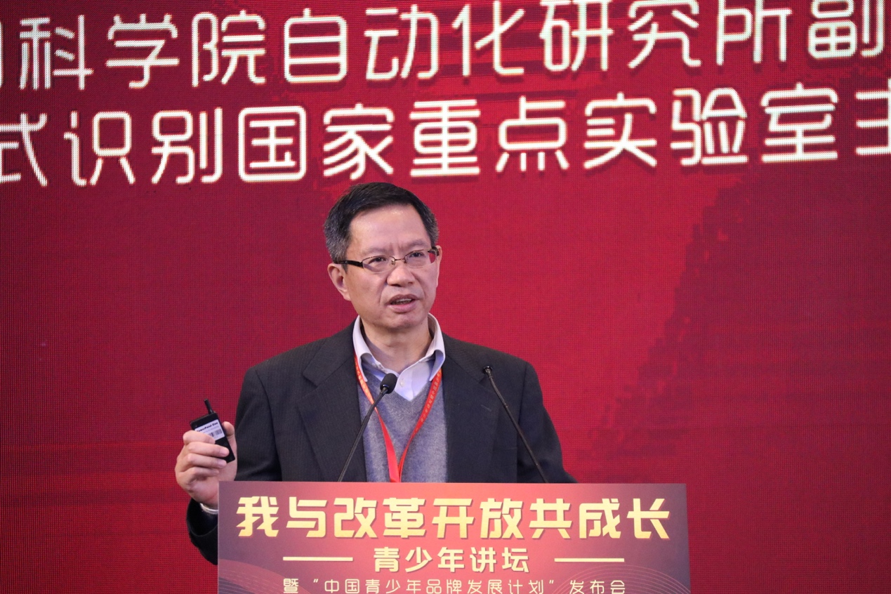 11月16日,中国科学院自动化研究所副所长、模式识别国家重点实验室主任刘成林在“我与改革开放共成长”青少年讲坛暨“中国青少年品牌发展计划”发布会上发表主题演讲。