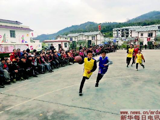 ▲马边县建设乡光辉中心学校学生下课参加体育活动。新华社记者轩玉珏摄