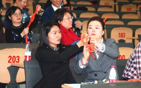 活动现场,时分安全的专业教官就紧急自卫术、遭遇火灾时应对——绳索打结、枪击防范与应对、爆炸预防与应急救护、国际通用手语等问题为学生进行了现场演示。全场教师和学生积极参与其中,会议结束后,还在练习绳索打结。