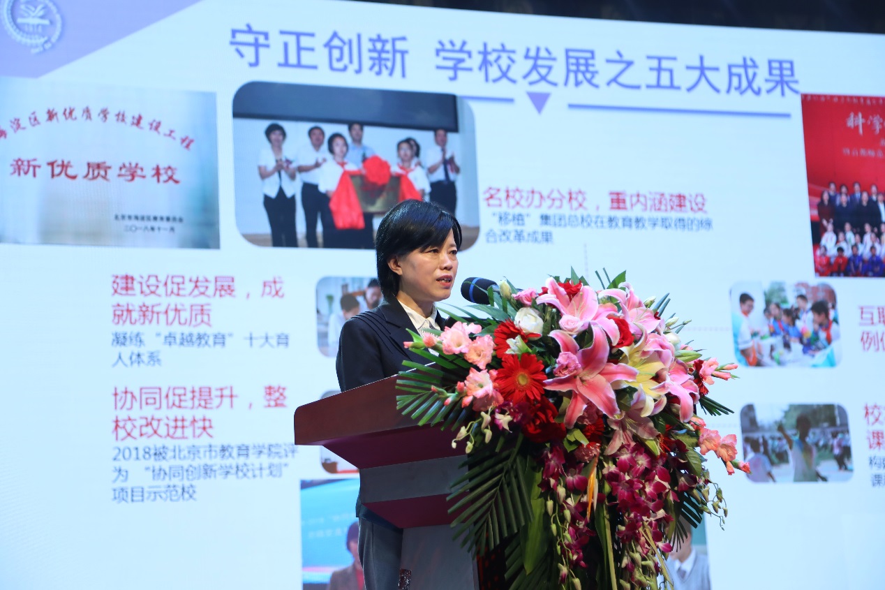 首师大附中第一分校梁宇学校长做了题为《礼乐文化 铸品养心》学校礼乐课程实践探索经验分享。学校将礼乐文化作为课程建设的核心,在课程体系中有效融入了礼乐文化教育的要素,以“礼乐课程”为手段,通过学礼,明礼修品;通过用礼,外显有规;通过议礼,求真尚美;通过弘礼,崇德弘毅。一分校学子在“礼乐”文化的浸润下,雅正的气度与气象已经显现。