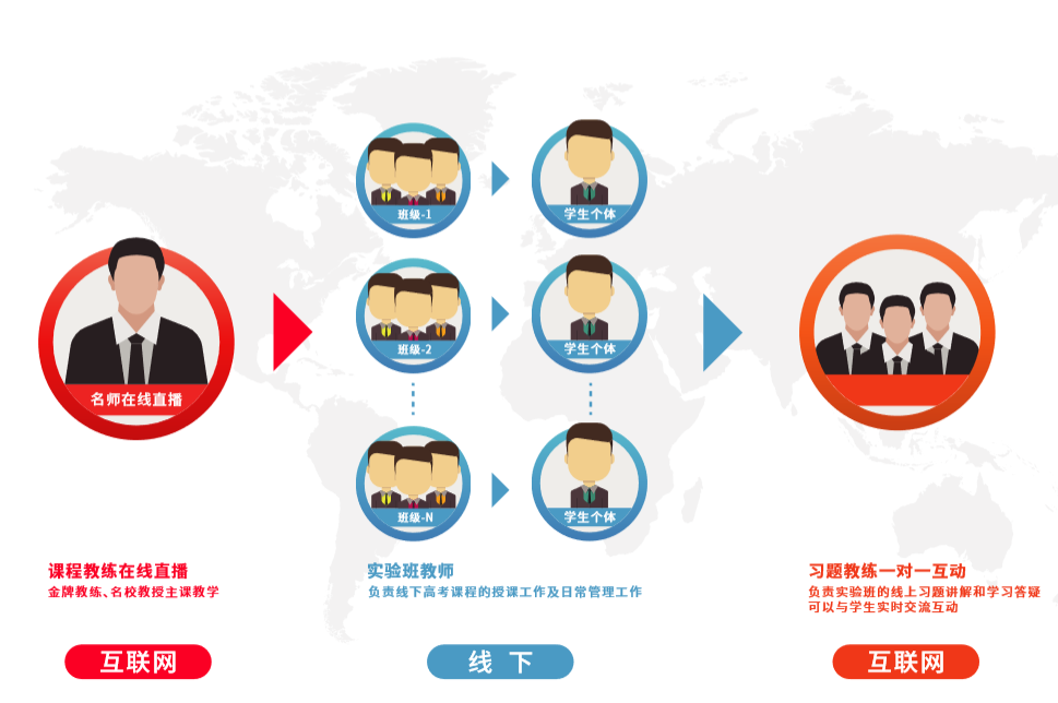 据介绍,所谓“三师”即课程教练、学校教练与习题教练。课程教练在线直播主课教学,进行知识点讲解,学生在学习中打下坚实基础。学校实验班教练负责线下高考课程的授课工作及日常管理工作,习题教练则负责实验班的线上习题讲解和学习答疑,可以与学生实时交流互动,解决学生个性化学习问题。通过线上线下结合,使学生接受到最优质教学服务,科学保证教学效果。
