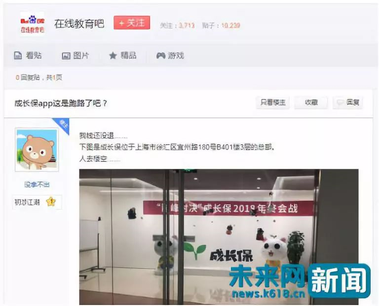 今年初网友质疑“成长保”跑路。截图自贴吧。