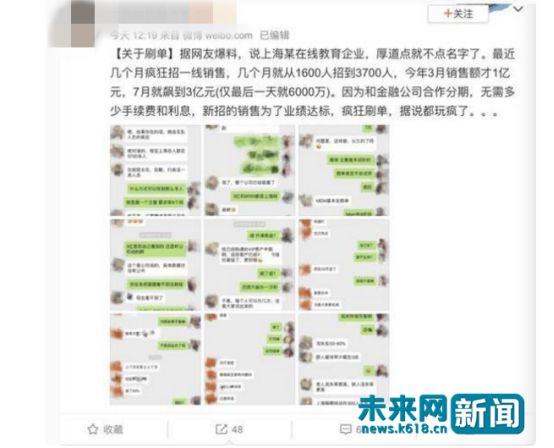 此前微博上关于在线教育企业刷单的爆料。