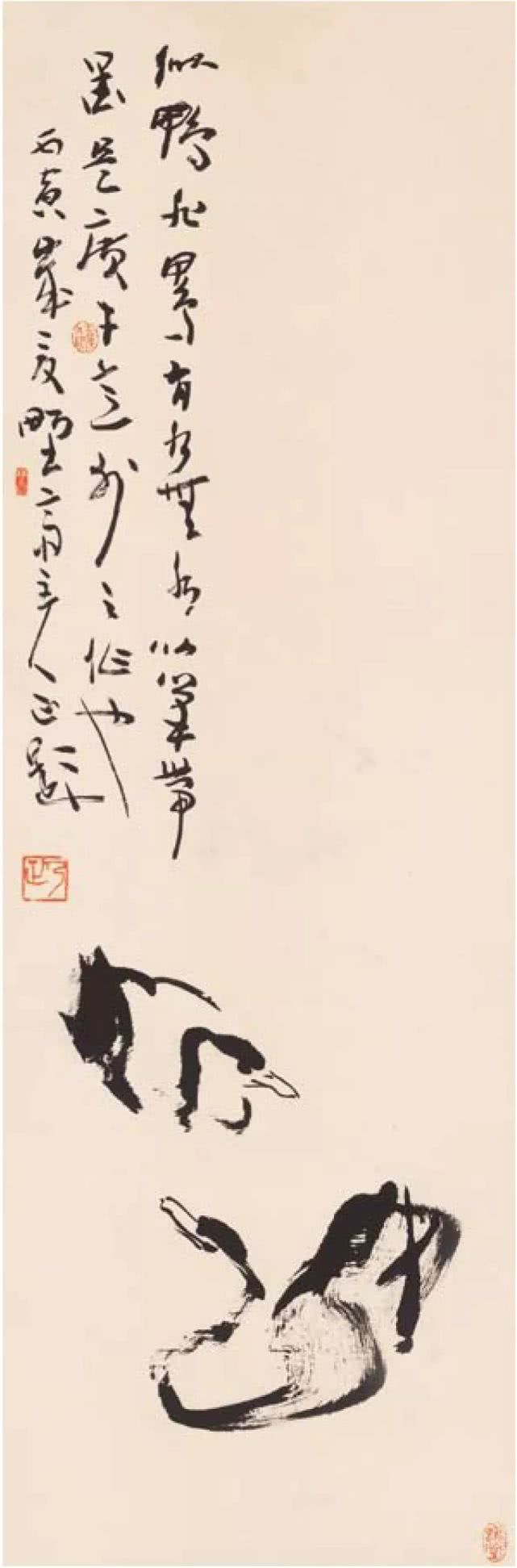 宇宙、人生、内心何其复杂?画家以艺术手法观照表现三者,只能是执简驭繁,只能是从简易中下工夫,以少少许胜多多许,因之,中国画常用黑与白二元素来表现宇宙之阴阳消息。是所谓简易。