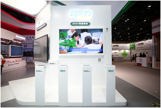 在新东方展区,"OKAY智慧课堂"是重点互动体验区。OKAY智慧课堂是OKAY智慧教育针对全日制学校及教育主管部门推进课堂改革、实现教育现代化所提供的一体化解决方案。通过OKAY学习专用智能终端(OK学习机)和OKAY教学专用智能终端,可帮助学生和教师接入OKAY智慧教育开放平台,在教育全场景下实现基于数据精准化地教与学。学校及区域管理者也可以基于数据进行更为有效的教学管理决策。