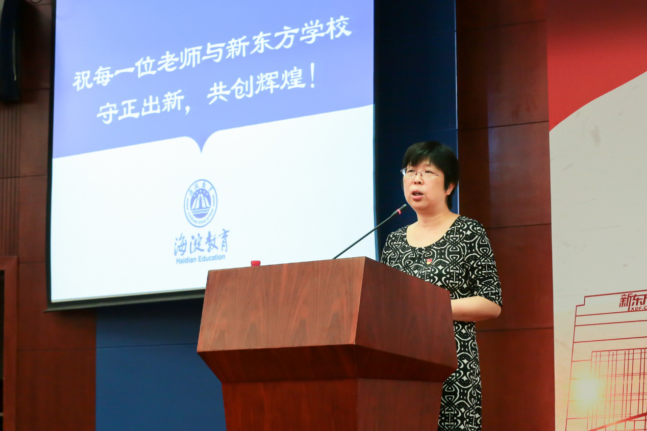 中共中央、国务院《关于全面深化新时代教师队伍建设改革的意见》指出要“着力提升思想政治素质,全面加强师德师风建设”。在此方面,新东方集团党委也一直在积极推进相关工作。本次大会,新东方集团党委特邀北京市海淀区教育委员会社会力量办学管理科科长左滨开展了《对标新时代中小学教师行为准则,立德树人,坚守教育初心》主题讲座。左科长围绕新时代下培训学校应遵循的法规和要求,以及教师的行为准则等话题,与现场新东方党员及教职工代表进行了探讨和交流。
