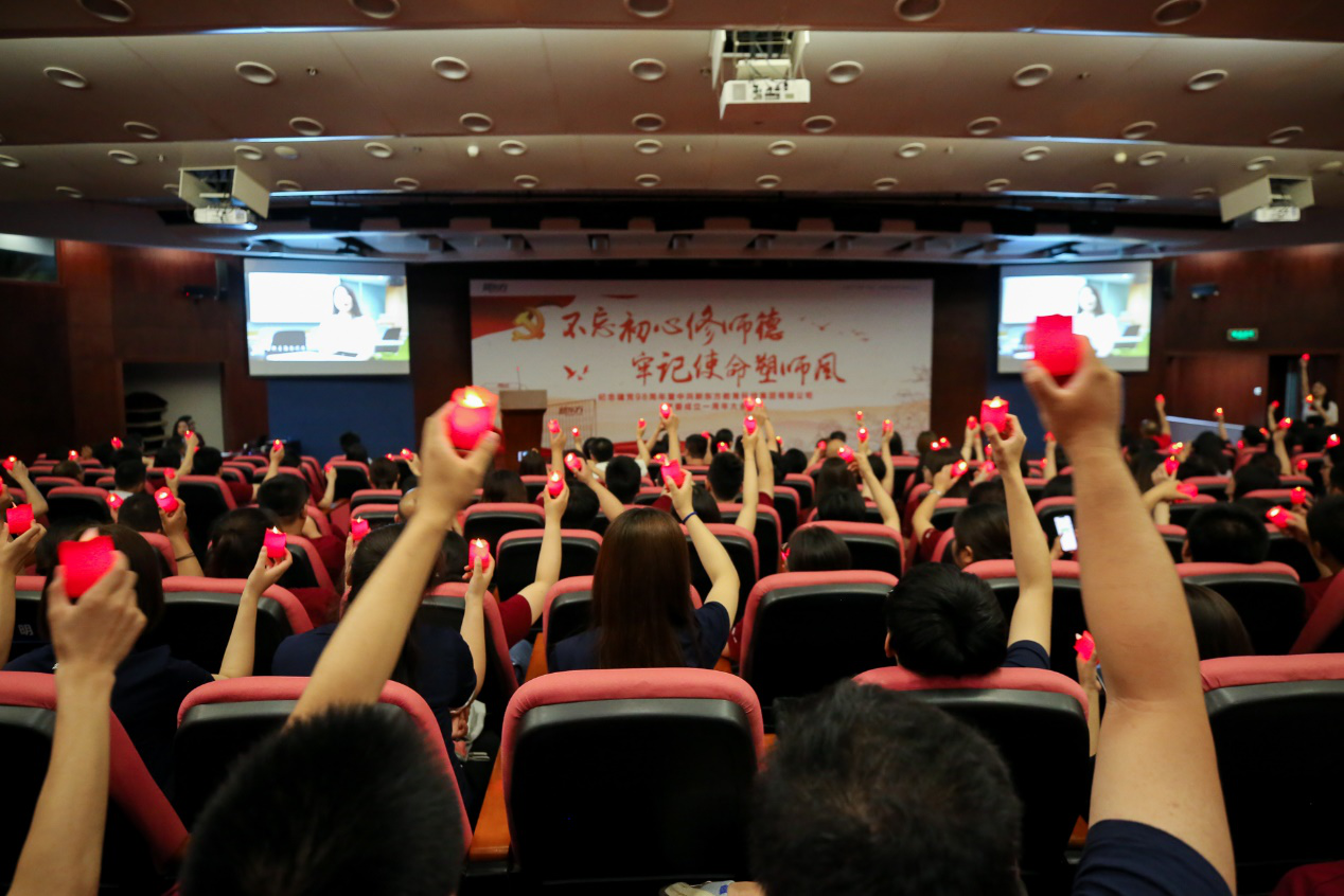 现场党员和教职工代表点亮烛光,共唱《我和我的祖国》