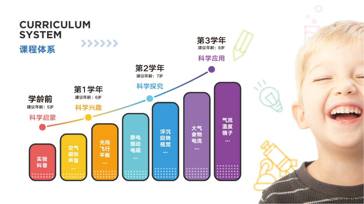STEAM科学课程完整对标《义务教育小学科学课程标准》,面向学龄前及小学阶段学生,涵盖空气、磁、声音、电力、动力等主题,将生活中常见的现象和经典发明实验以严谨的科学实验形式在课堂中还原。