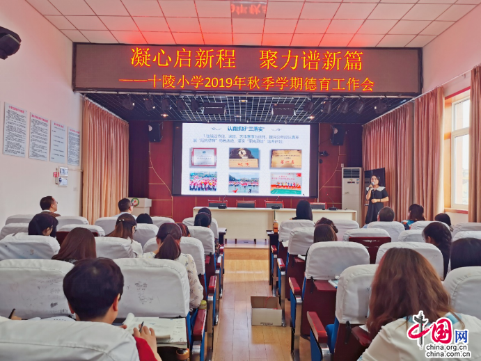 中国网8月29日讯(魏杰)加强学校班级管理队伍建设,增强德育团队凝聚力,确保开学工作顺利开展和德育工作的扎实推进,8月29日,成都市龙泉驿区十陵小学校举行了“凝心启新程,聚力谱新篇”2019年秋季学期德育工作会,学校全体教师参会。