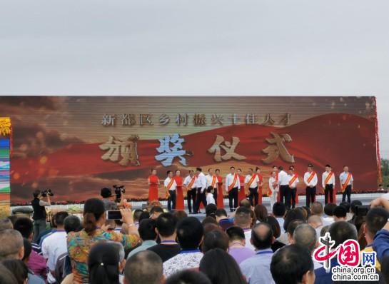 启动仪式上对新都区乡村振兴十佳人才代表进行了表彰,随后,新都区农民群众满怀激情“向祖国报喜”,晒出丰收成绩单,许下丰收心愿。“新都柚”和“新都泡菜”推荐人为“家乡代言”,现身说法讲述品牌强农带动群众富起来的故事,乡村手工艺大师现场演绎非遗绝活,赢得全场掌声,成都网红打卡地标——沸腾小镇用自编自演的歌曲和舞蹈,唱响新时代“沸腾新生活”。