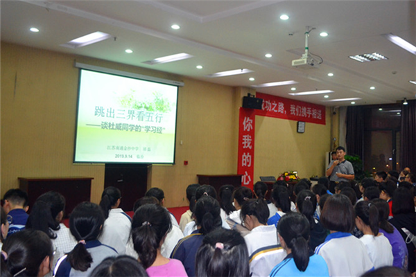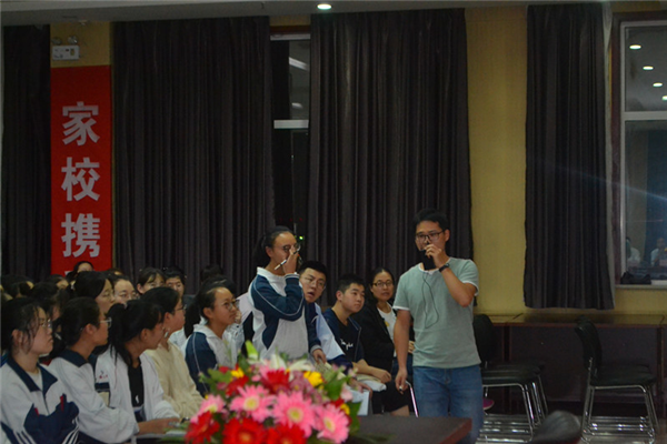 中国陶行知研究会理事、福建省陶行知研究会副秘书长周志平作《脚踏实地 仰望星空——与高三同学聊生活教育》主题报告。他认为生活世界有经验世界、理念世界和人造世界构成,高三学生应该打通经验世界、理念世界和人造世界。在学科的理念世界基础上,一方面要能脚踏实地打通经验世界与理念世界;一方面要能仰望星空打通理念世界与人造世界。周老师也提供了从经验、概念、原理到技术和产品的五步思维法。该报告让高三学生更加明白自己学习学科知识的意义和价值,学习的核心进一步指向了思维法。