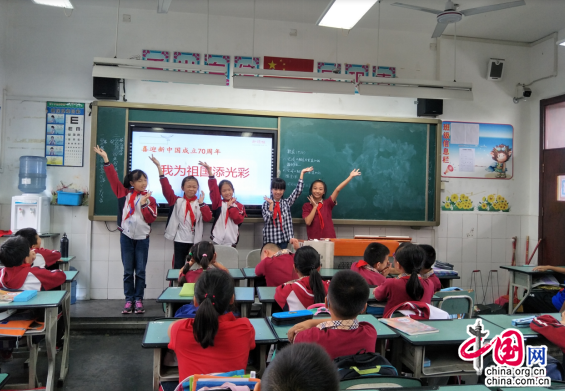 中国网9月24日讯(李小野)庆祝新中国成立70周年,进一步激发小学生的爱国之情、报国之志、兴国之责,9月23日,成都市龙泉驿区十陵小学开展了“庆祝新中国成立70周年”爱国教育系列主题活动。