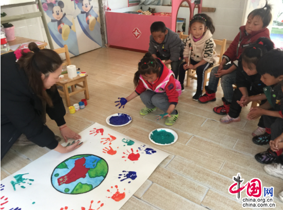 四川长江职院学前教育专业义静老师带来艺术领域课程:手指色彩涂鸦。孩子们从“认识三原色”到“发现色彩的变化”,再到“生活中的色彩”与“我喜欢的色彩”,最后“用自己的小手体验和感受色彩”,在地球画页上印上手印的过程。义静巧妙地将体验式学习与审美教育融合,引导孩子们认识美,感受美,体验美。
