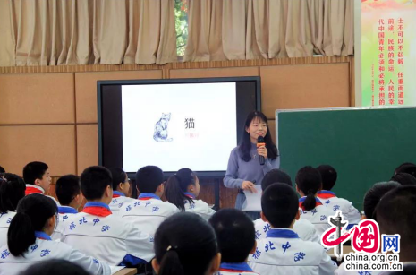 本次活动由“两堂课、两个小讲座、一个专家总结”三个板块组成,扎实有序。深圳赵查工作室成员陈兰燕执教第一堂研讨课《猫》,她通过“看见三只猫”、“看见第三只猫”、“看见‘看不见的’”三个教学板块推进教学,学生在其灵动精巧的教学引导下逐渐走入文本深处,碰撞出睿智精彩的回答,现场不时响起热烈的掌声。