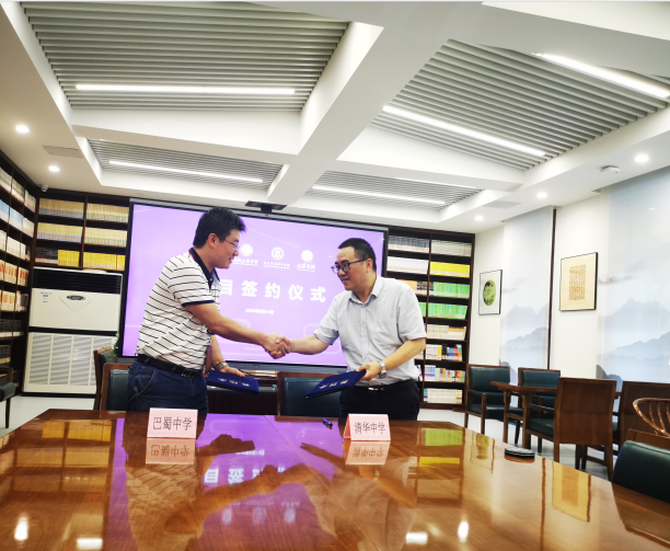 2020年6月15日,重庆市巴蜀中学校(以下简称巴蜀中学)与重庆清华中学就“巴蜀云校双师+课程班”项目签署合作备忘录。“巴蜀云校双师+课程班”是重庆市巴蜀中学校在新时代背景下的创新与突破,通过科技赋能教育,为友好学校提供教育、教学、教研、评估、教师发展等多维度、全方位的解决方案。巴蜀中学校长王国华、校长助理宋晓宇、巴蜀云校校长张煜等云校项目负责人,重庆清华中学校长隆勇、副校长漆红娟等校领导出席了本次签约仪式。