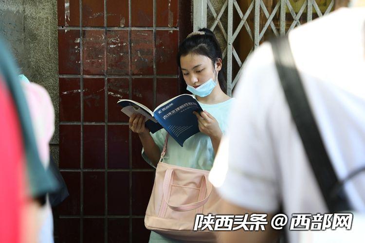 8时许,西安市西北工业大学附属中学门口的考生越来越多。记者在现场看到,有多位考生抱着习题和课本仍在复习。第一科考语文,很多考生抓紧最后一点时间复习,拿着古诗文专注的背诵。还有考生已经胸有成竹,和其他同学在开心的交谈。
