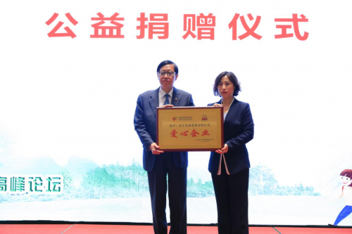 会议现场举行了公益捐赠仪式,由中华少年儿童慈善救助基金会理事长王林为华海财产保险股份有限公司、辽宁东渔商贸有限公司等5家企业颁发了爱心企业荣誉牌匾,为表示对生态校园建设工作的支持,华海财产保险股份有限公司向青少年生态环境教育专项基金捐款现金20万元、保险产品120万元,辽宁东渔商贸有限公司捐款现金20万元,所有捐赠均用于生态校园公益项目,其余爱心企业捐赠物资陆续接收中。
