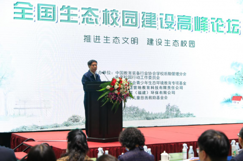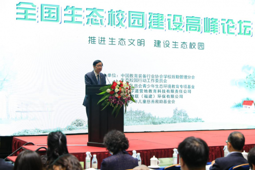 2020年10月22日,由中国教育装备行业协会学校后勤管理分会、中小学生态校园行动工作委员会共同主办,中华儿慈会青少年生态环境教育专项基金、北京零道营地教育科技有限责任公司、爱家物联(福建)环保有限公司联合承办的“全国生态校园建设高峰论坛”在重庆市悦来国际会议中心举行。教育部关心下一代工作委员会常务副主任、中国教育装备行业协会会长王富,中华少年儿童慈善救助基金会理事长王林,北京市高教学会会长、北京市教委原主任线联平,重庆市教育局装备管理中心主任陈瑜,生态校园行动工作委员会常务副主任刘子玉,中华儿慈会青少年生态环境教育专项基金主任李钢等领导和嘉宾出席会议,会议由中国教育装备行业协会常务副会长李兴植主持。来自北京、河北、天津、湖南、辽宁、四川等12个省市的教育装备部门的领导、县市教育装备站主任、中小学校长、教育专家学者等200余人参加会议。