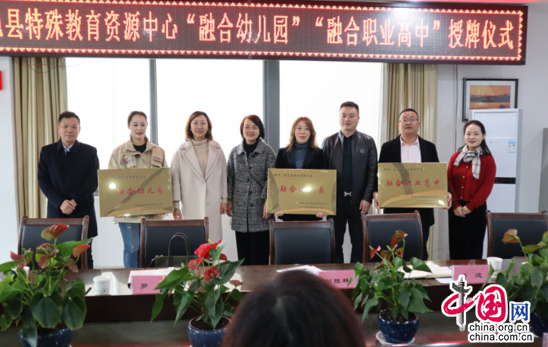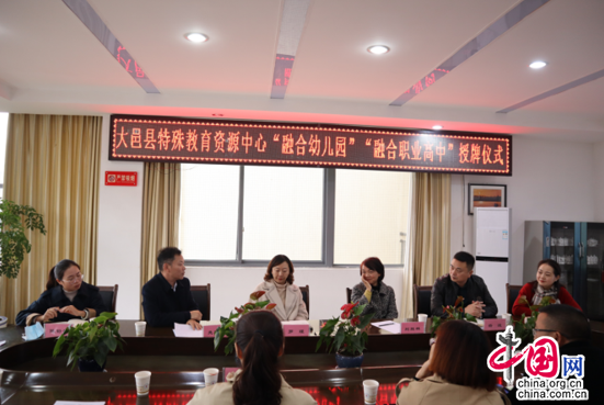 中国网11月12日讯(宋得恩)随着新时期“办好特殊教育”的时代要求和特殊教育二期提升计划的实施,全面推进融合教育、特殊教育向两头延伸乃至构建特殊教育终身服务体系被提上议事日程。因此,在学前和高中设立接纳残疾学生的“融合学校”,开展学前和高中阶段融合教育是发展特殊教育的当务之急。11月11日,成都市大邑县特殊教育“融合学校”授牌仪式在大邑县职业高级中学举行。四川师范大学教授刘胜林、成都市特殊教育资源中心副主任先照勇受邀到会指导。大邑县教育局机关党委书记、资源中心主任罗瑾,教育科科长杨波参会。县职业高级中学、邑新幼儿园、安仁镇幼儿园负责人以及县特殊教育资源中心巡回指导教师等参会,会议由县特殊学校校长刘莎主持。