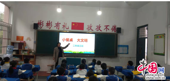中国网11月12日讯(何佳法)弘扬勤俭节约的传统美德,推动形成“厉行节约、反对浪费”的良好社会风尚。近日,巴中市南江县沙河镇小学开展了“小餐桌,大文明”的主题教育,极大地提高了全体学生勤俭节约的意识。