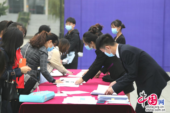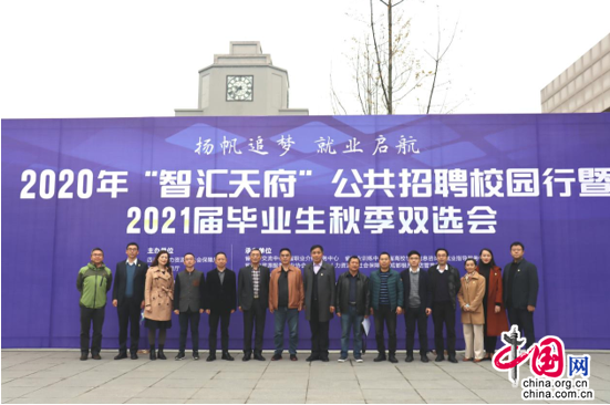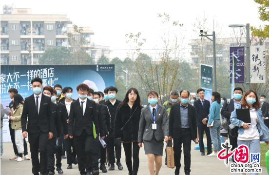 中国网11月12日讯(李小野)11月12日,由四川省人力资源和社会保障厅、 四川省教育厅主办,省人才交流中心、省职业介绍服务中心、省就业训练中心、省高校学生信息咨询与就业指导服务中心、省人力资源服务行业协会、郫都区人力资源和社会保障局、成都银杏酒店管理学院承办,成都高新西区、郫都区8所高校协办的“智汇天府”公共招聘进校园大型秋季双选会在成都银杏酒店管理学院举行。招聘会吸引酒店旅游、建筑装饰、智能制造、生物医疗、广告新媒体、房地产物业、现代服务业、IT 互联网、金融、教育培训等多个行业的300家单位参加,提供招聘职位800余个,岗位8500余个,学院及周边高校2500余名2021届毕业生参与,其中学院毕业生数近2000人。