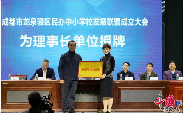 中国网11月23日讯(钟传亮)11月22日,成都市龙泉驿区民办中小学校发展联盟成立大会(以下简称:发展联盟)暨“五育并举”民办中小学专题论坛,在新格林艺术高级中学校举行。中国教育学会评价办主任秦建平,中国教育科学研究院发展研究所所长吴景松,成都实验外国语学校(西区)校长肖明华,成都市教育局副巡视员万斌,龙泉驿区区委常委、宣传部长彭钚铀,龙泉驿区教育局党组、党委书记、局长雍峰,龙泉驿区教育局党组成员、党委委员、副局长张英武、李长广,龙泉驿区教育科学研究院院长周文群等专家、领导出席会议。辖区内11所民办中小学校长及教师代表参加。