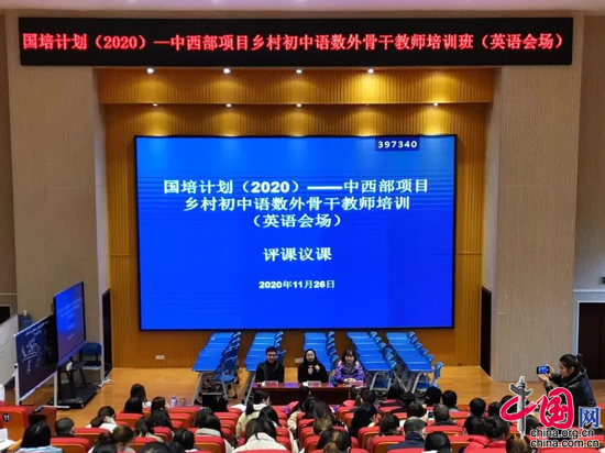 中国网12月2日讯(刘杨)近日,贵州省“国培计划(2020)——中西部项目乡村初中数学、英语骨干教师培训”在贵州遵义市开展。来自贵州省中西部项目初中数学、英语学科200余名骨干教师及遵义师范学院附中的全体数学、英语学科教师参加此次集中研修。成都市泡桐树中学数学组邹伶老师、英语组陈斌老师在青羊区教研员潘绍茂和王玉梅的带领下,代表青羊区学科优秀教师赴贵州遵义,为国培项目的培训教师进行课堂展示和指导。