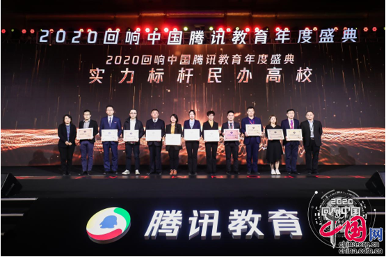 中国网12月3日讯(李小野)12月2日,由腾讯网主办的2020“回响中国”腾讯教育年度盛典在北京举行。本次盛典以“共迎挑战,共赢明天”为主题,近千位教育大咖、行业专家、精英代表齐聚一堂,通过论坛、演讲、分组讨论和盛典荣誉的不同形式与各界同仁共议教育发展,共谋教育未来。盛典活动通过网络评选和教育行业专家学者的综合评分,评选出了“年度实力标杆民办高校”“年度全国创业就业典范高校”“年度品牌影响力教育集团”等多个重要奖项,成都银杏酒店管理学院获得“2020年度实力标杆民办高校”“2020年度全国创业就业典范高校”两项荣誉,这是对该学院在现阶段取得的教育成就的认可和鼓励。
