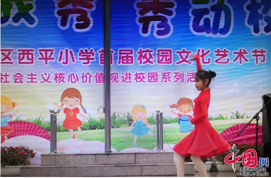 中国网12月9日讯(钟传亮)弘扬时代主旋律,培养学生全面发展。12月7日,成都市龙泉驿区西平小学校首届“校园文化艺术节”活动正式开幕!本次活动包含了器乐演奏、舞蹈、歌唱、美术、朗诵、武术等综合艺术表演形式,为让学生能充分展示自我,本次活动学校搭建了两个展示舞台。采用大课间和午间休息的时间进行节目展演,让同学们能充分感受校园文化艺术节浓厚的氛围。