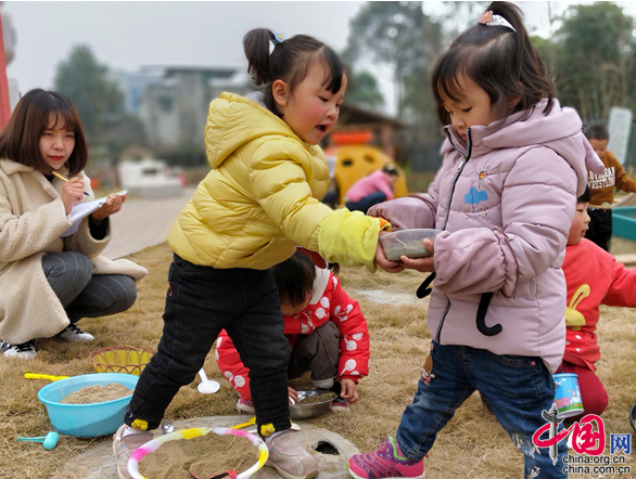 成都天府新区永兴幼儿园地处农村,有着得天独厚的自然条件,因此在“亲近自然,回归生活”的办园理念,“自然生活教育”办园特色的引领下,重抓“五育并举”,全面发展素质教育,充分利用地理优势、自然环境,创设极具特色的种植区、户外大区域自主游戏区,让孩子们的德、智、体、美、劳得到全面协调的发展。