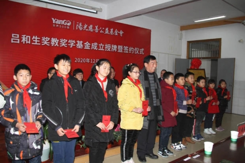 12月7日,阳光慈善公益基金会与阳光金服集团联合发起成立的“吕和生奖教奖学基金”在江苏省常州市金坛区五叶小学签约揭牌,五叶小学首批12名优秀学生和10名教师代表受到奖励。
