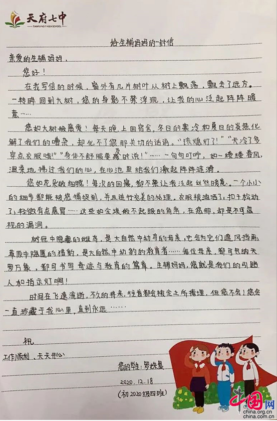 体验深爱,回馈厚情。在一周的多岗位实践体验后,天七学子自发地为后勤老师写了祝福信,将满满的感谢、感激、感恩之情汇聚成一张张深情的告白信……