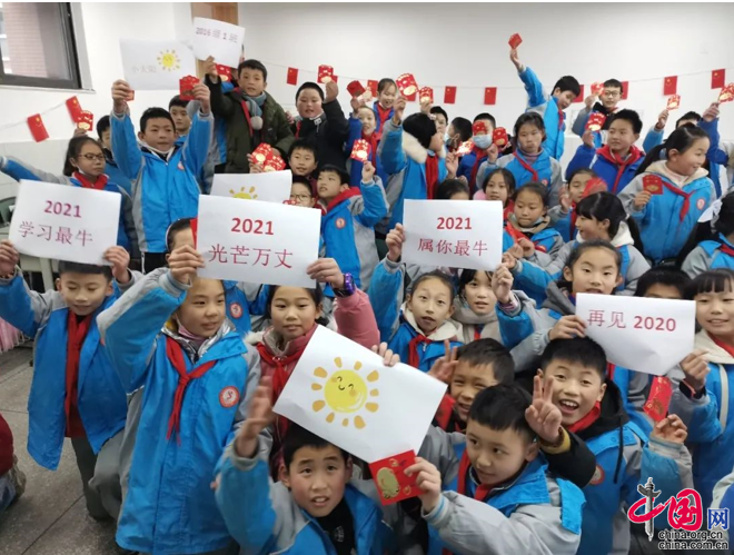 美好愿望——祝福篇:“2021,欢乐多多,祝福也多多。”同学们制作新年贺卡,写下新年寄语,为自己、为家人、为亲朋、为祖国送上满满的节目祝福。
