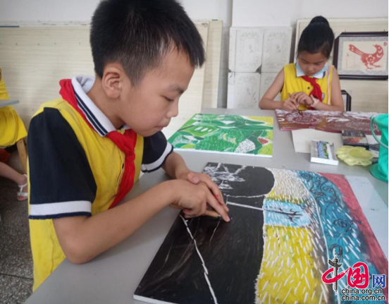 走在巴中实验小学,走廊里、班级黑板上、班级墙外,随处可见一幅幅漂亮的画作——版画、洛铁画、水墨画无不展示着学生的特长和丰富多彩的学校生活。