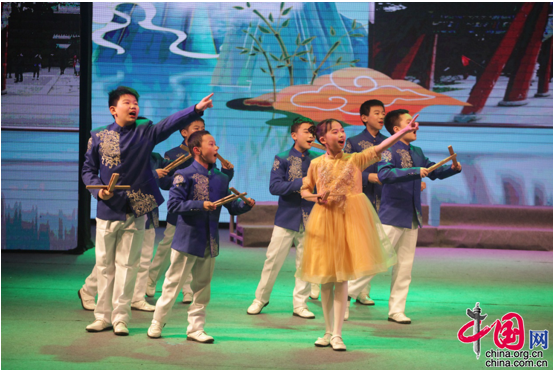 紧跟时代的步伐,积极传承传统文化艺术,让更多的人了解成都、热爱成都!弟维小学带来国家级非物质文化遗产——金钱板《逛成都》。