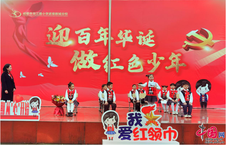 回顾峥嵘岁月,喜迎建党百年。龙江路小学武侯新城分校在新学期开学典礼上,围绕建党100周年,开展了“龙娃心向党 做红色少年”红领巾故事会。少先队员们用红歌联唱、校园情景剧、诗歌朗诵等方式再现了《酝酿建党,开天辟地》、《红军长征难上难》、《抗日战争显担当》、《新中国成立共团结》等中国共产党不同时期的红色经典故事。活动还邀请到了曾经参加过中越自卫反击战的老军医——四(4)中队王子政同学的爷爷给少先队员们分享了当年的艰难岁月。学校相关负责人表示,活动展现了新城龙娃娃在新时代中的成长和精神面貌,为师生们上了一节特别的“开学第一课”。