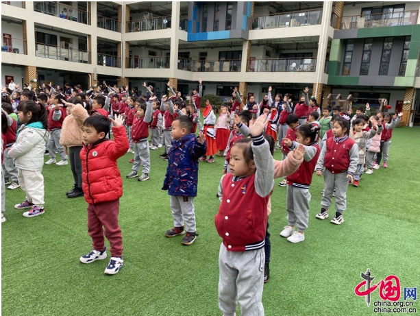 带着牛年的喜气、春天的希望,武侯七幼迎来了“七宝”返园的时刻。在礼仪宝宝的引导下,孩子们敲鼓,摸了葱、苹果、橘子和糖,寓意新的学期孩子们一鼓作气、一鸣惊人、聪明伶俐、平平安安、橙心如意、身体棒棒、学习棒棒,新学期甜蜜如糖。开学典礼在放飞的风筝中拉开序幕,伴随着音乐《奔跑的少年》,体智能老师带领“七宝”们进行体能锻炼。幼儿园园长向全园师幼送上新年祝福,并为孩子们分发了向日葵种子,希望小朋友们在新的一年播种希望,收获成长。
