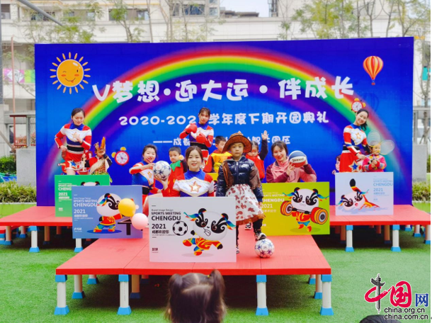 成都二十一幼武兴园区结合“爱成都,迎大运”的主题,举行了“V宝爱蓉城,快乐迎大运”的开学典礼,“V宝”在体会相聚快乐的同时亲近蓉城文化,了解大运会的精神,萌发运动的热情;武兴园区师幼以吉祥物蓉宝为载体,用活力四射的歌舞展示蓉城的文化底蕴、饮食习惯和人文情怀,展现东道主的热情。智达园区开学典礼主题为“V梦想,迎大运,伴成长”,园区负责人表示,希望新的学期,“V宝”们在老师的关心和爱护下开心地学习、快乐地游戏、健康地成长。让V 宝感受天府文化,萌发对家乡的热爱,激发对运动的热情。百草园园区开展了以“天府V宝,喝彩大运”为主题的开学典礼,老师们将天府文化带到舞台上,大熊猫、太阳神鸟、川剧变脸,精彩的节目赢得“V宝”阵阵欢呼。