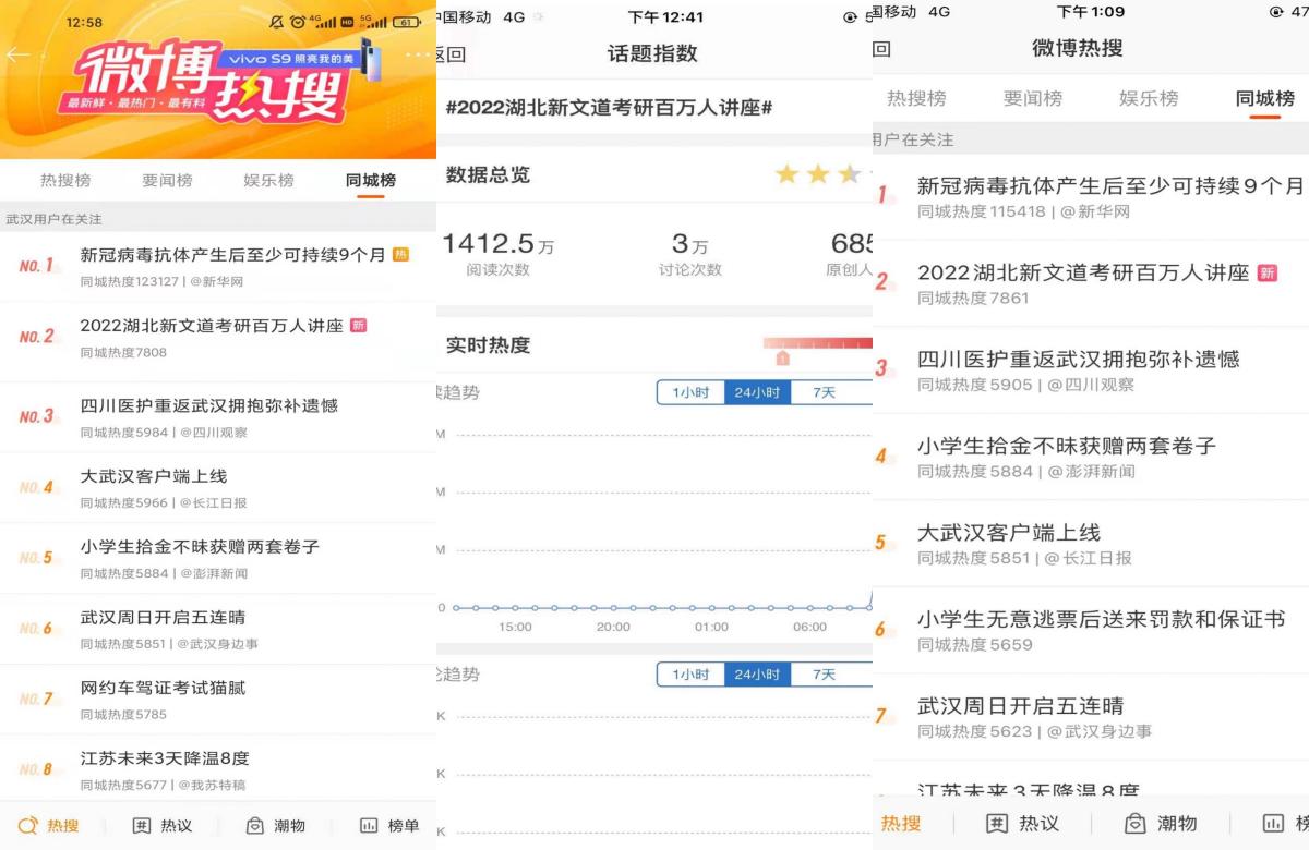 名师名教新文道,考研行业风向标。3月20日,新文道教育集团“2022考研百万人公益讲座”在湖北武汉湖滨总部校区盛大举行,新文道名师团何凯文、汤家凤、蒋中挺、万磊和考研规划师董良才亲临现场,围绕2022考研热点话题多学科、全方位剖析2022考研的新趋势,详细解读最新政策和热点问题。活动采用“线上+线下”结合的方式,线下大讲堂实地讲座,线上直播间同步直播,新文道教育集团全国200余家直营和加盟城市、1000余座高等院校覆盖,现场活动气氛爆满,广大学子好评如潮。讲座刚刚结束,新浪微博超级话题#2022湖北新文道考研百万人讲座# 迅速被推上同城热搜榜第二名,参与人数高达1412万多人次。