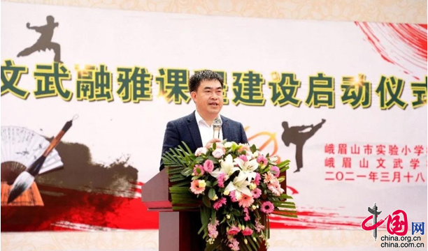 中国网3月22日讯(黄建兵)为了进一步贯彻健康第一的教育理念,促进峨眉山市实验小学校博雅文化下“融雅学科”健美体育课程之武术课程的开展;推动教育改革和学校的发展,搭建区域内教师互相学习的平台,优势互补,共同成长。3月18日,峨眉山市实验小学校与峨眉山文武学校开展“文武融雅”课程建设启动仪式。